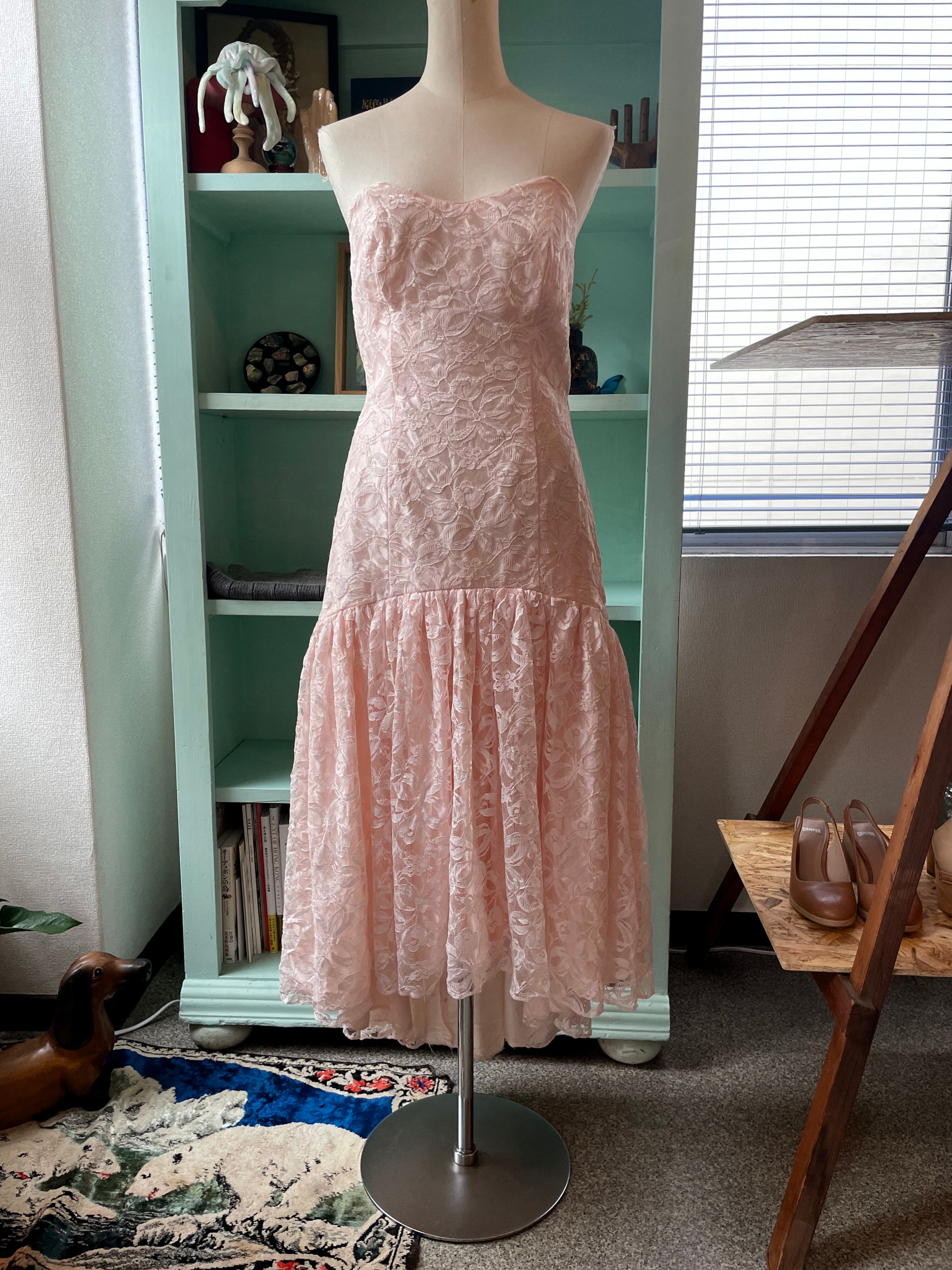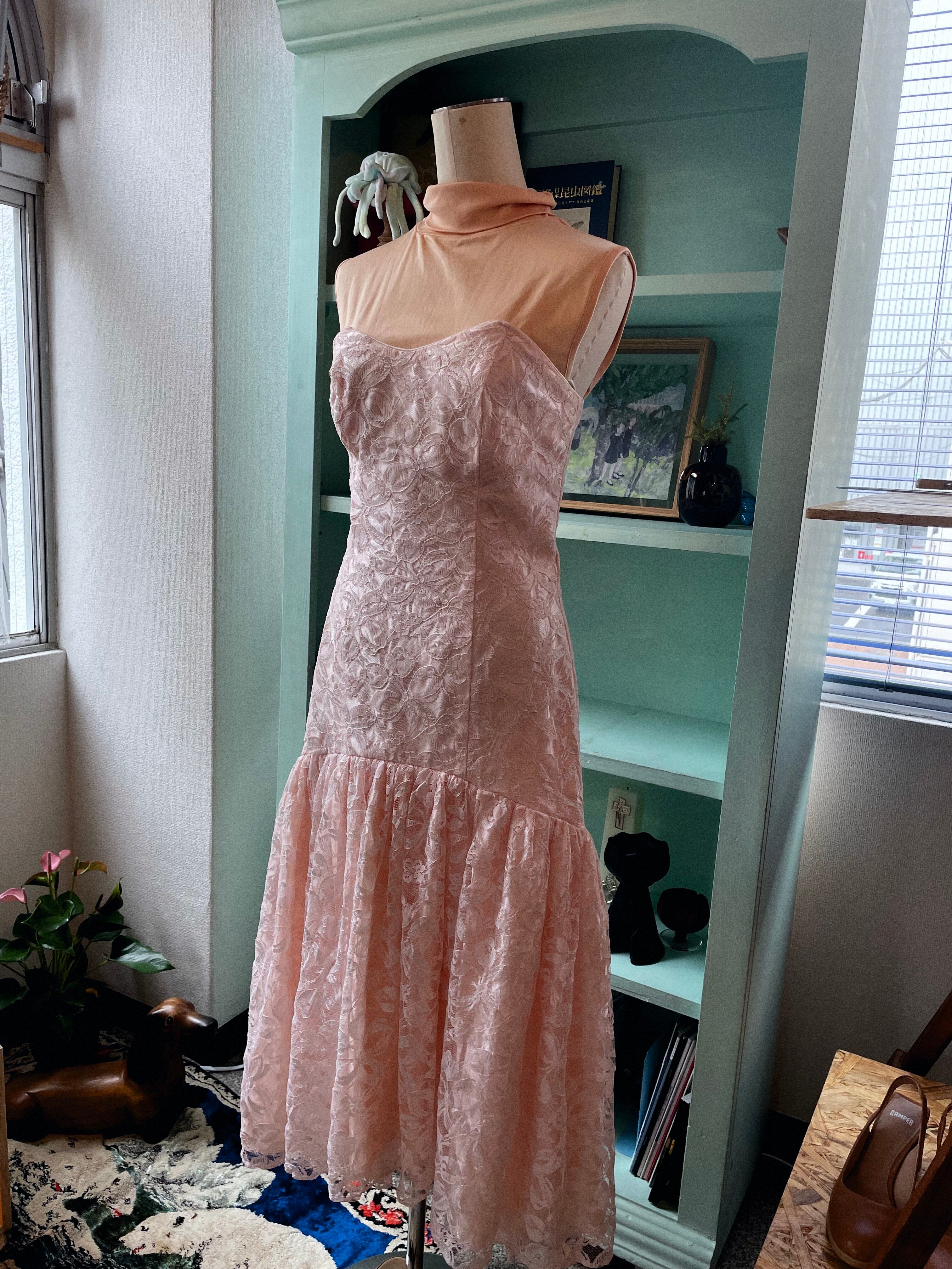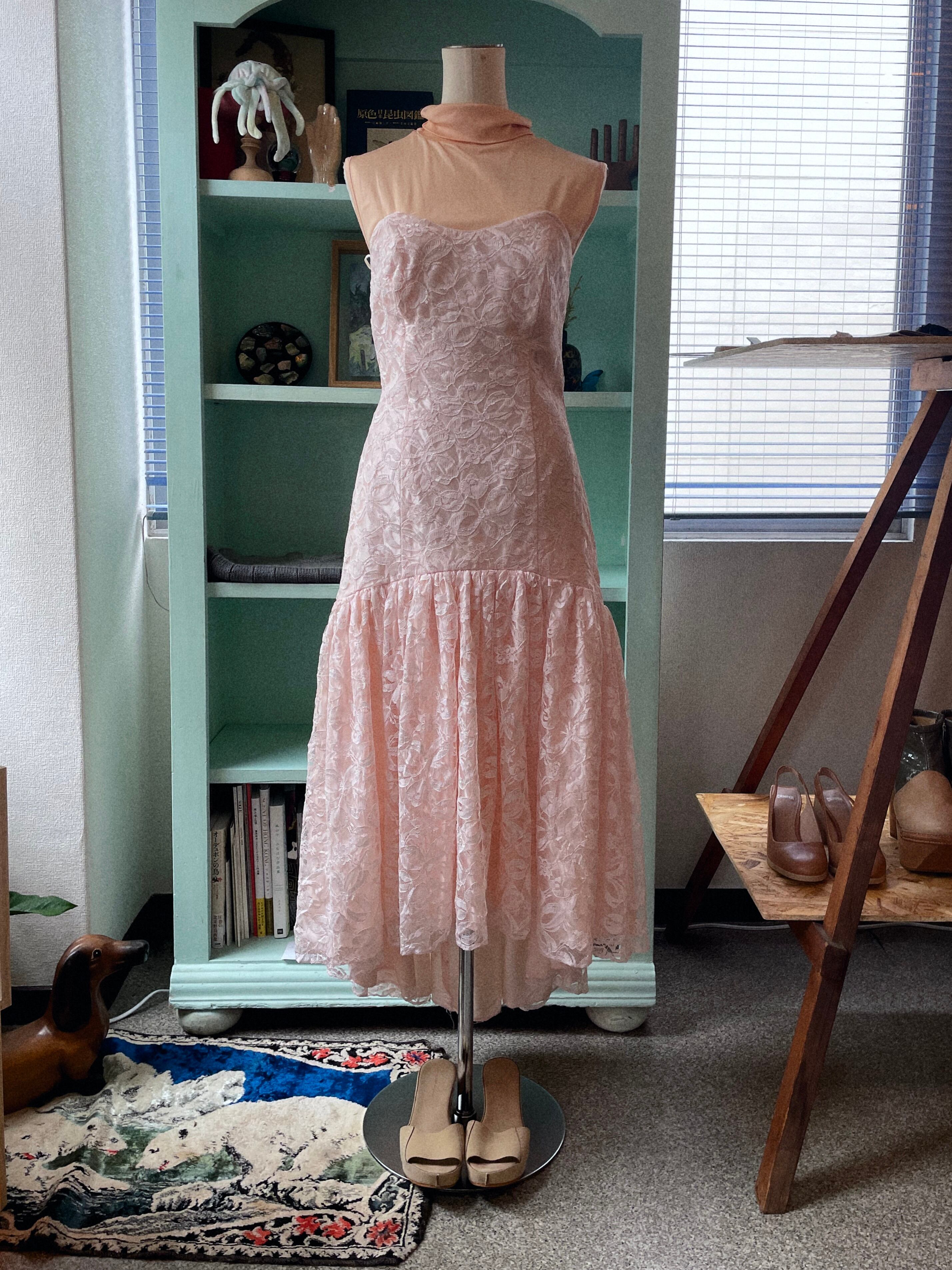 肌馴染みの良いピンクのレースドレス。