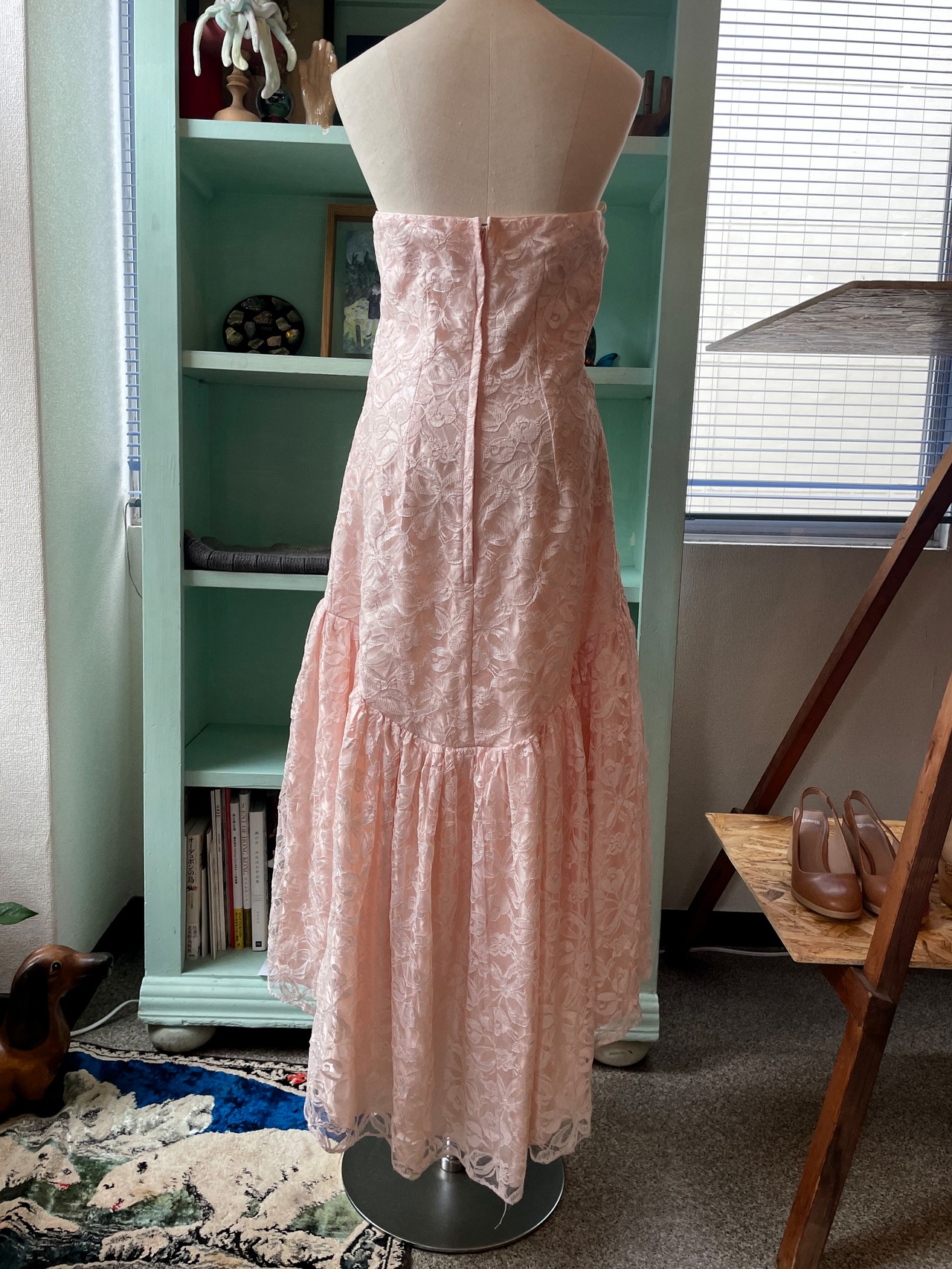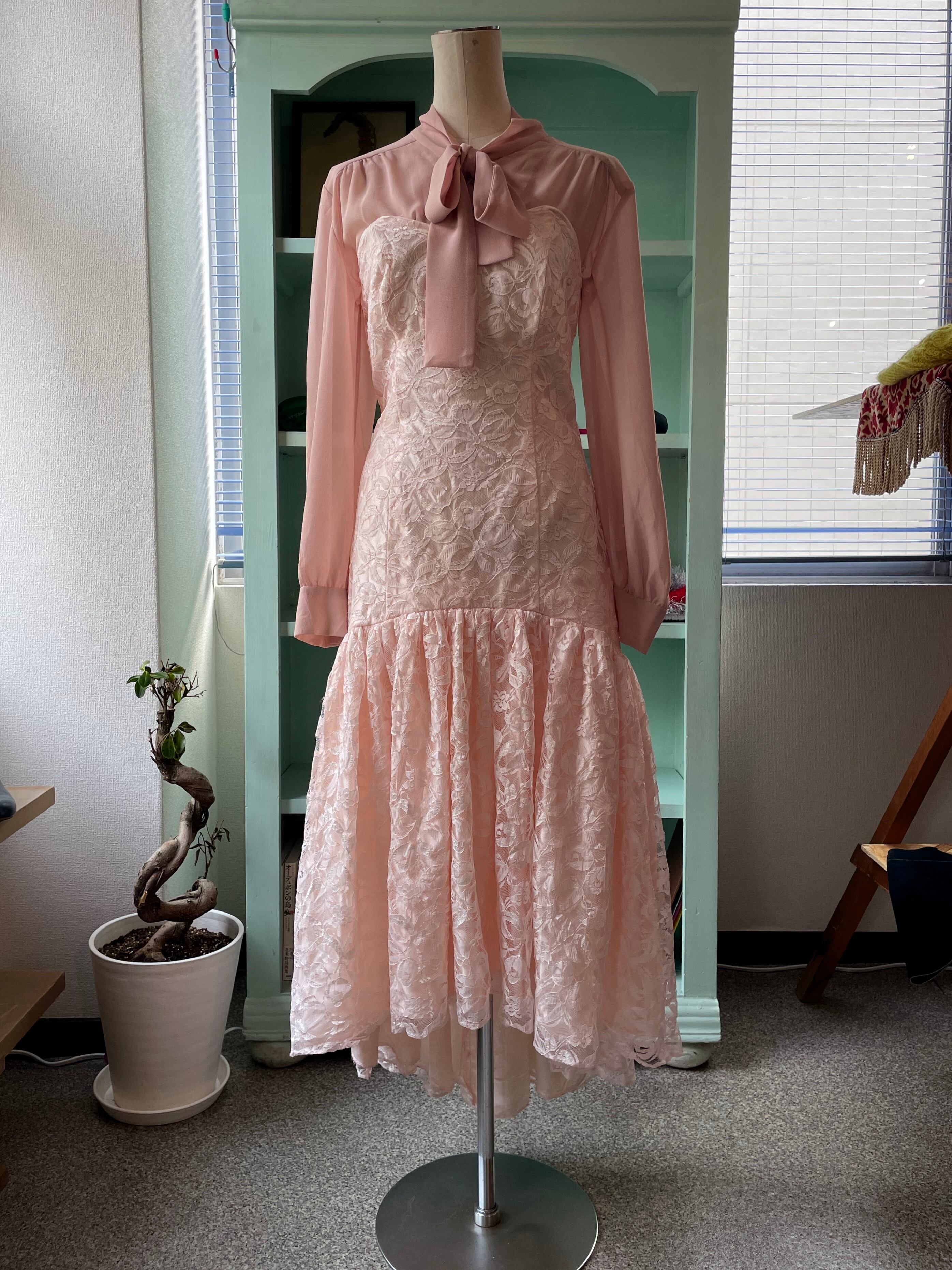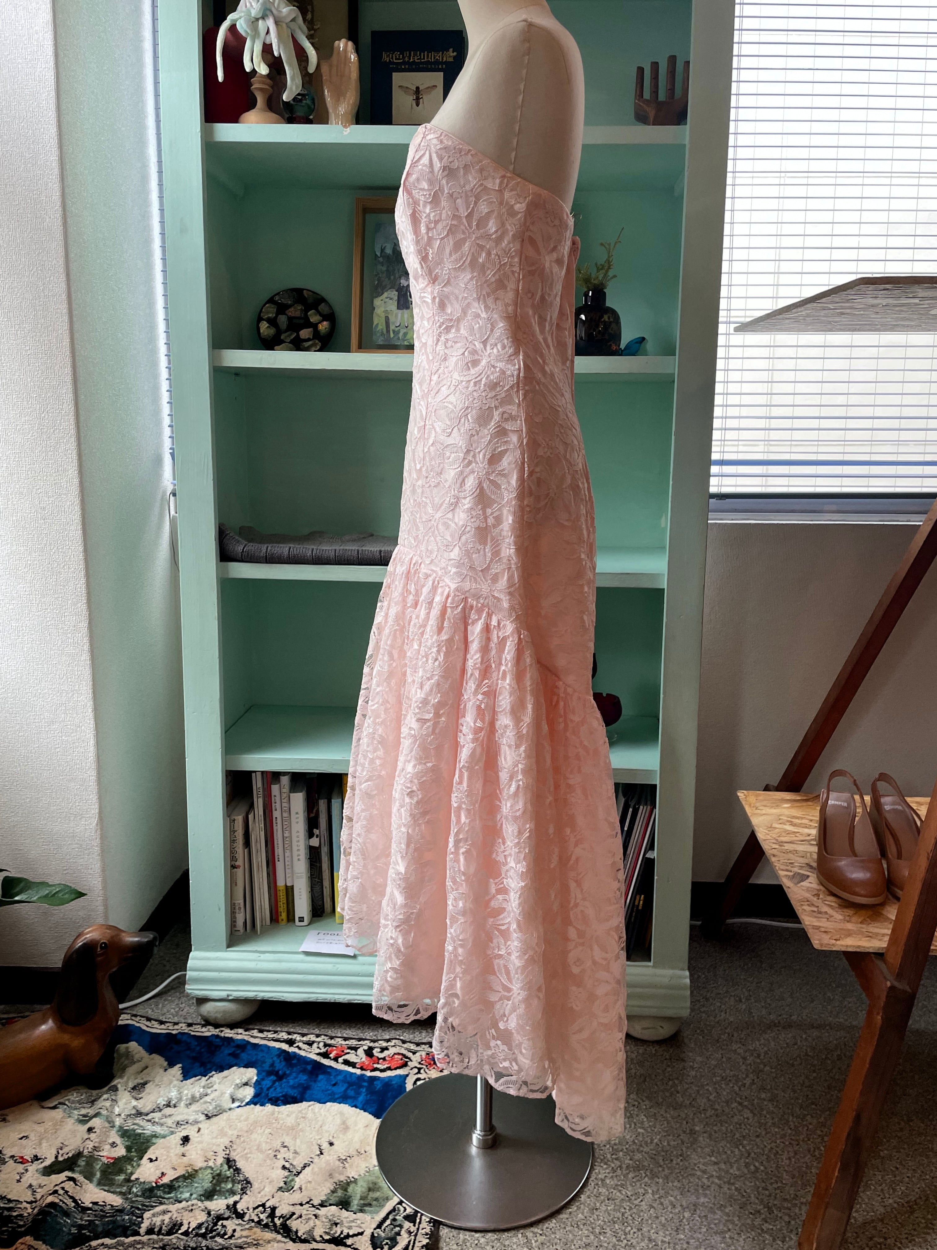 肌馴染みの良いピンクのレースドレス。