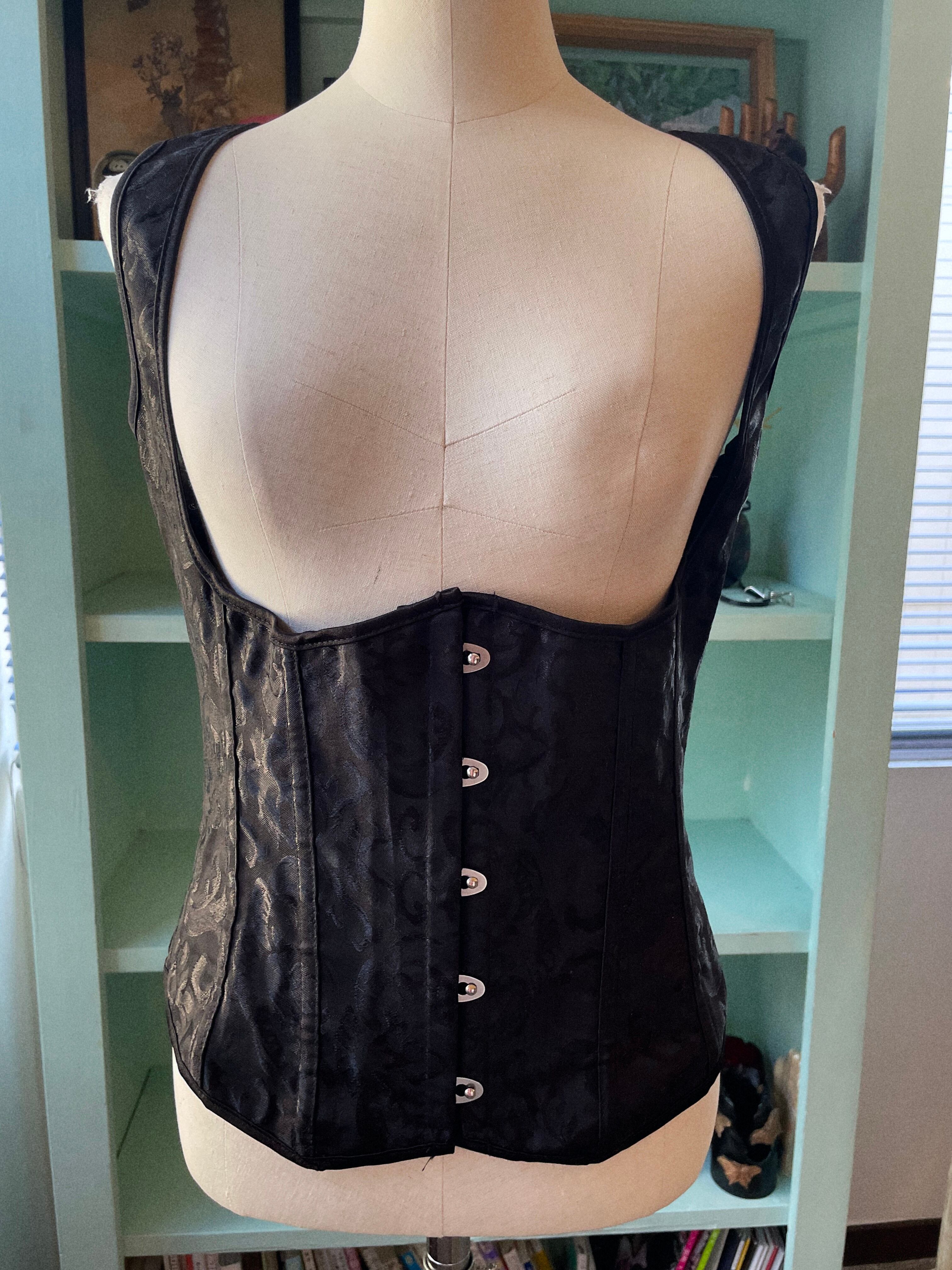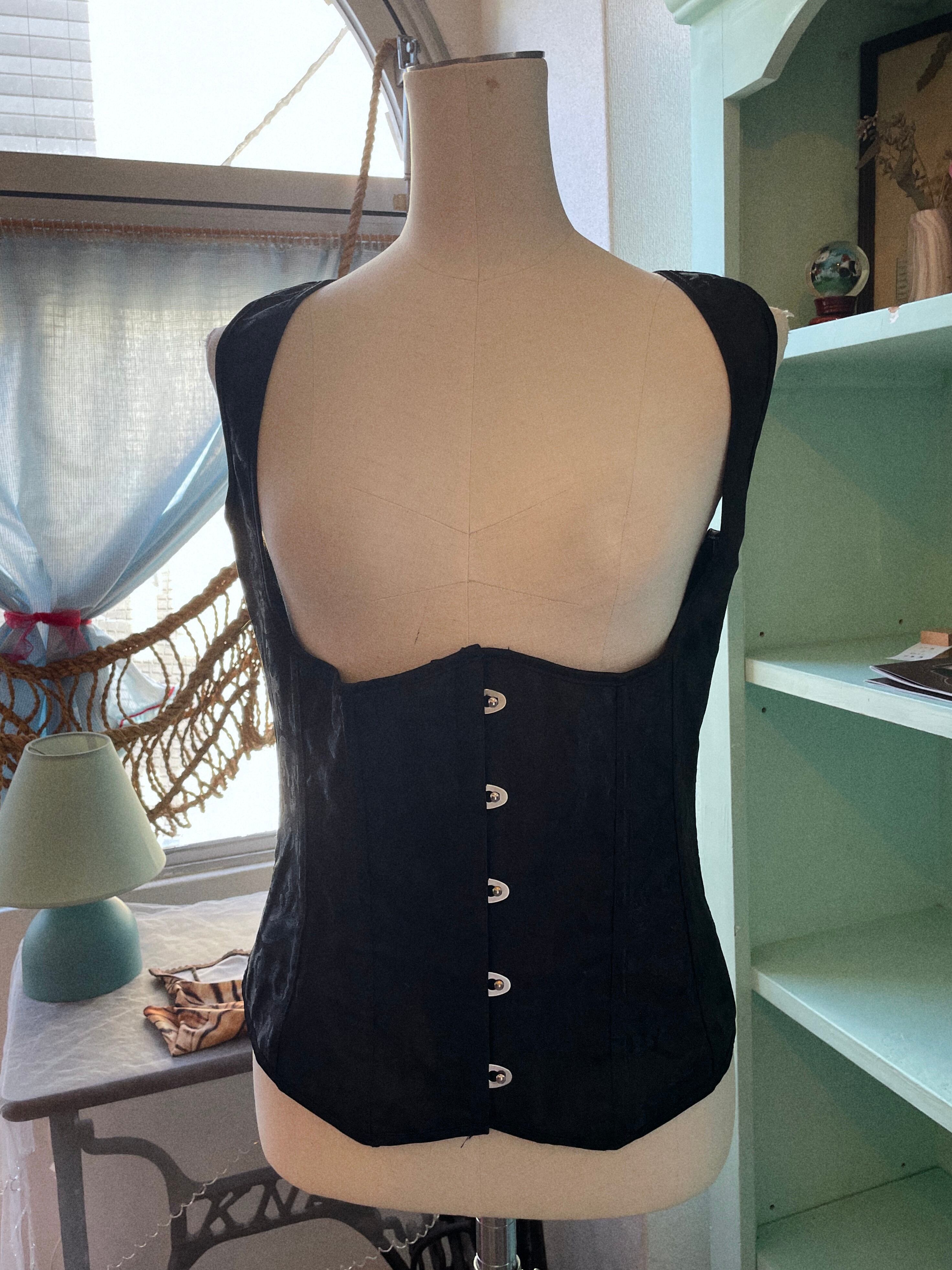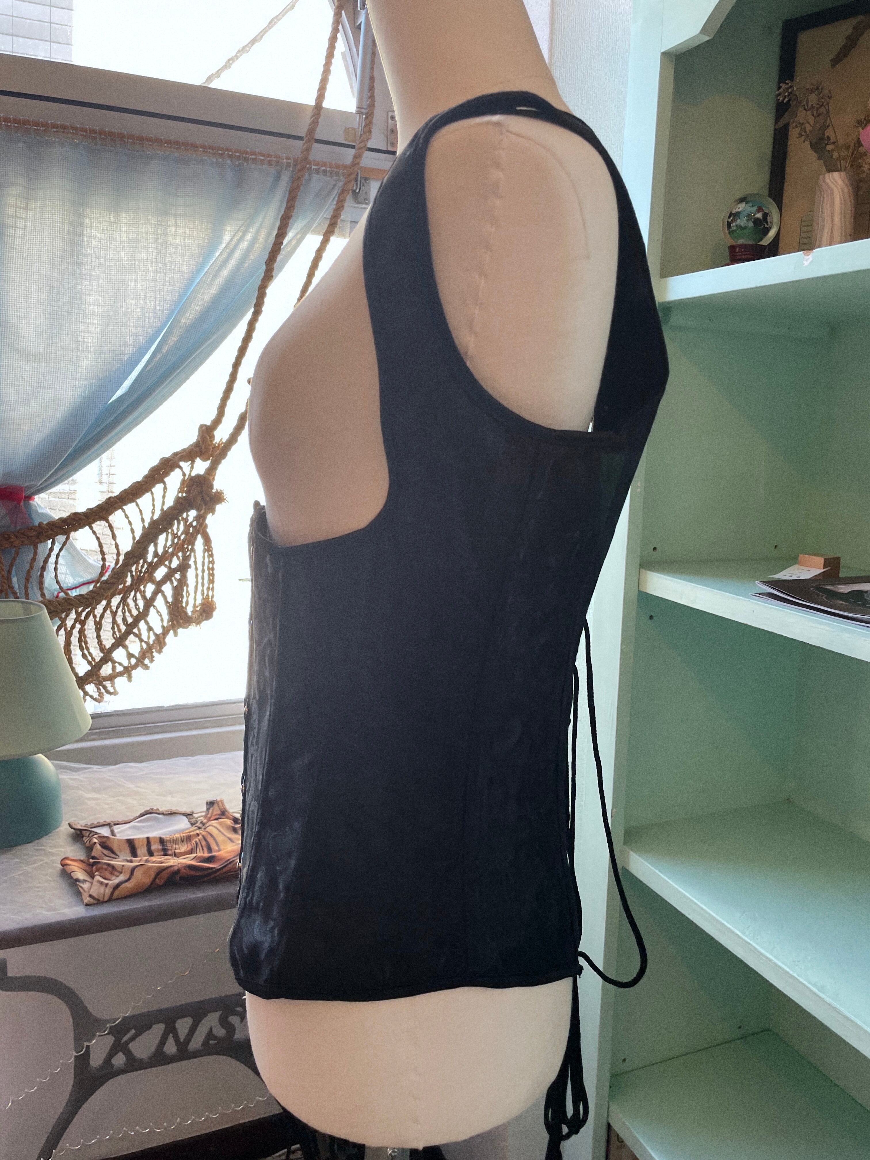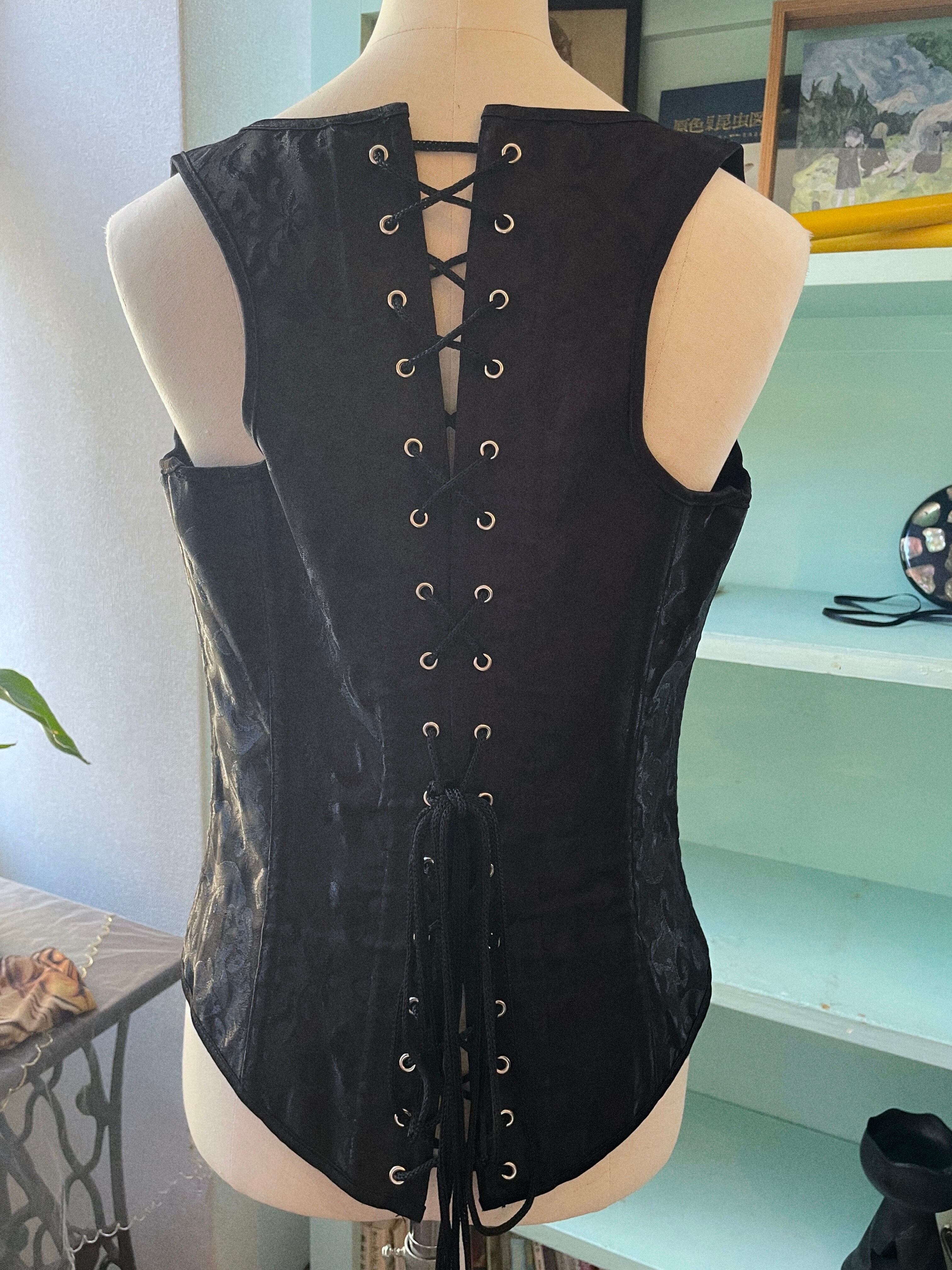 ベストのように着て、胸下からウエストを覆うデザインです。