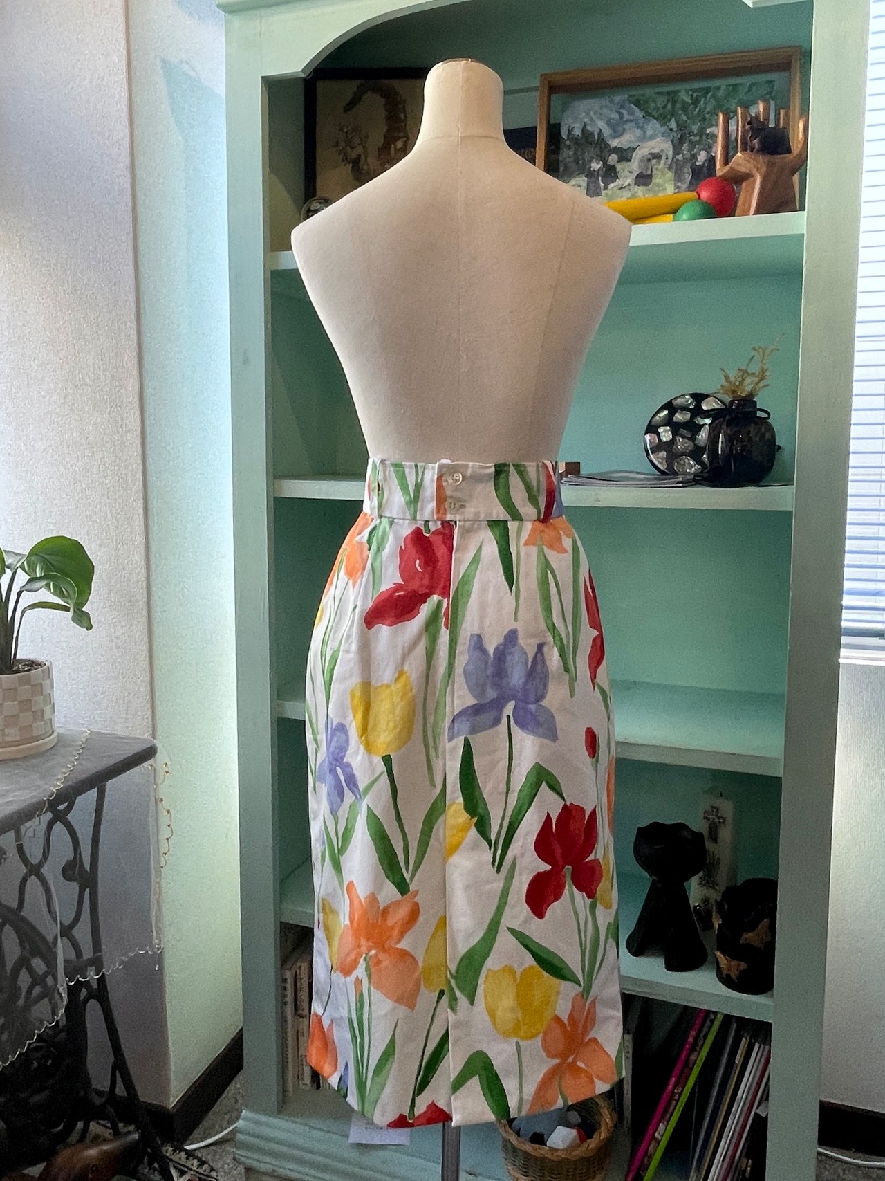 水彩タッチの花柄のスカート。
