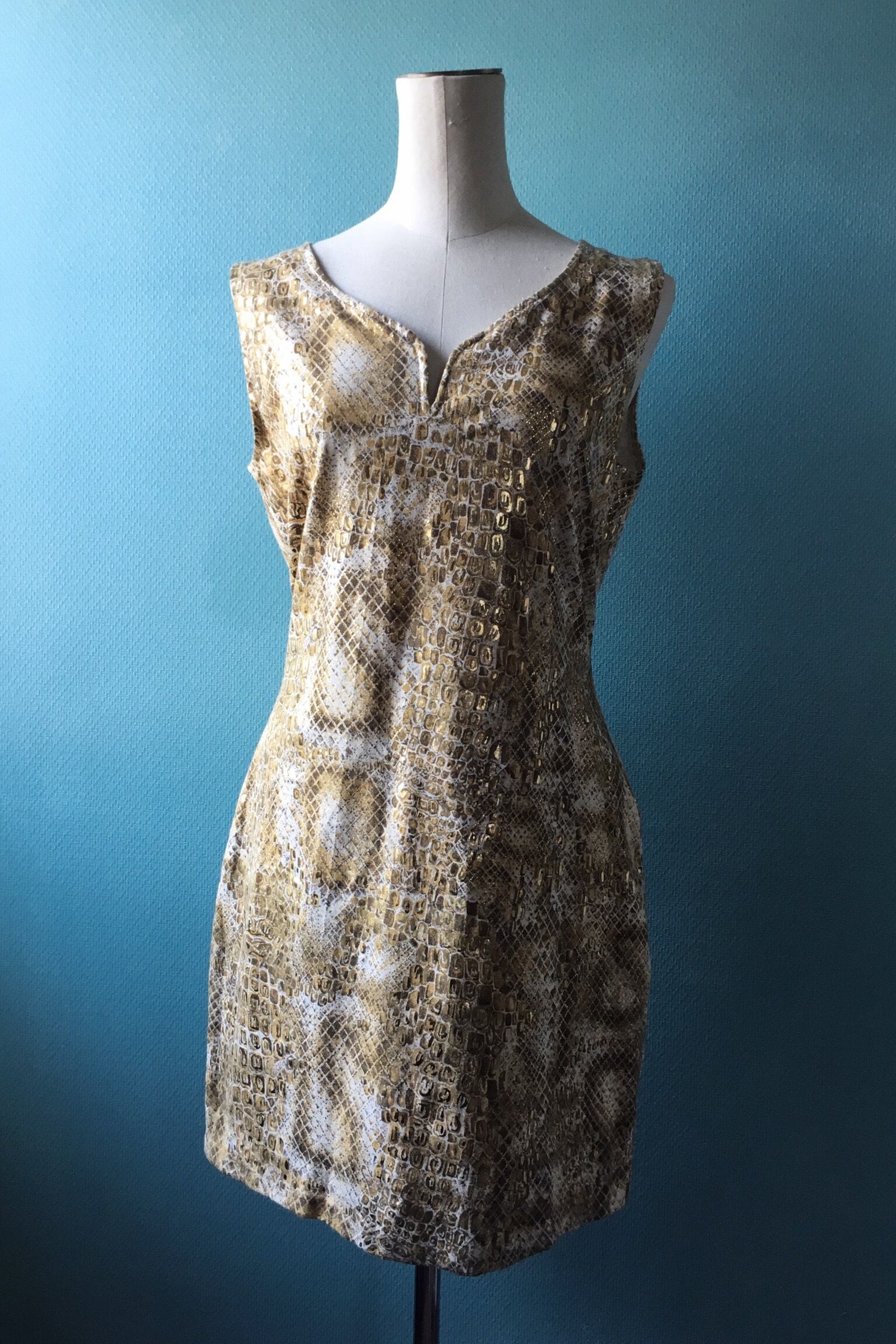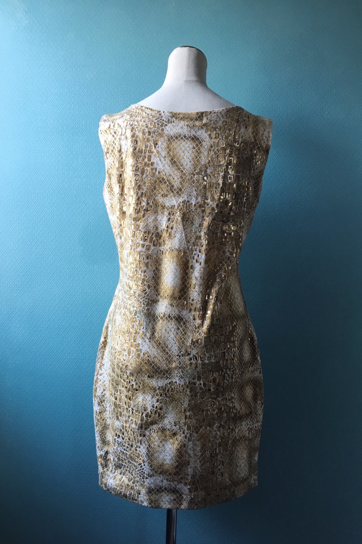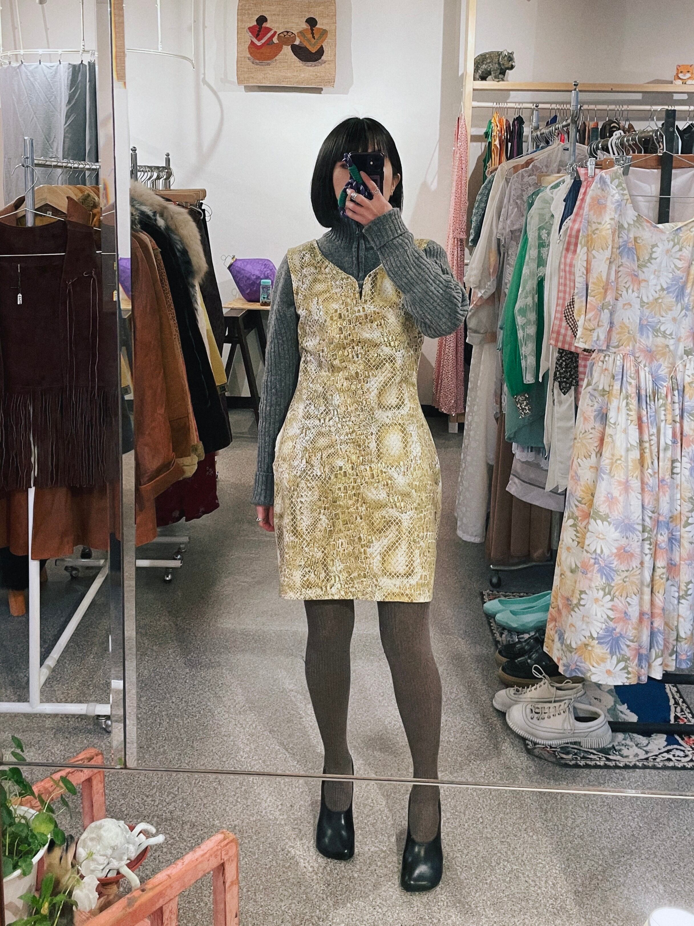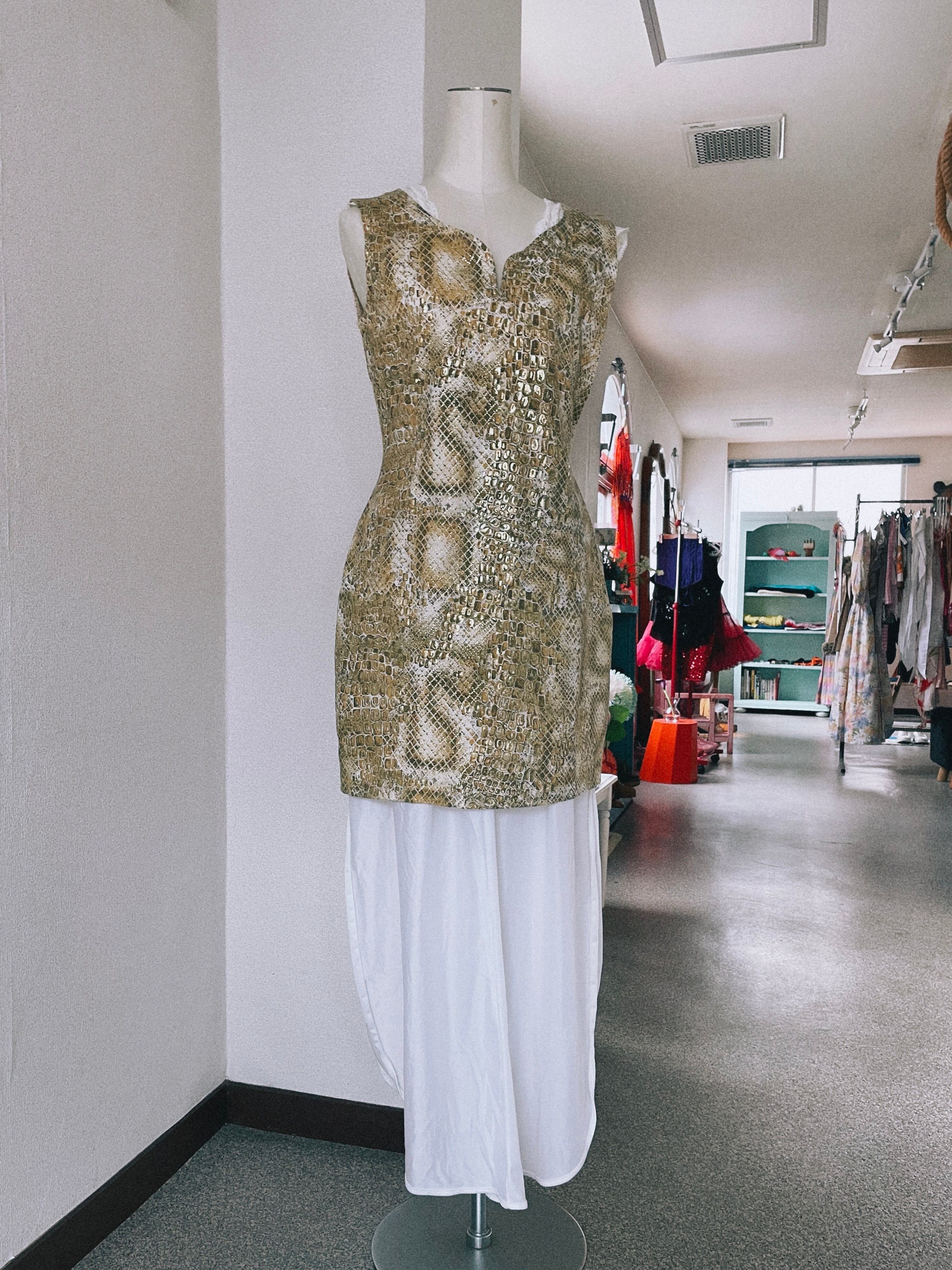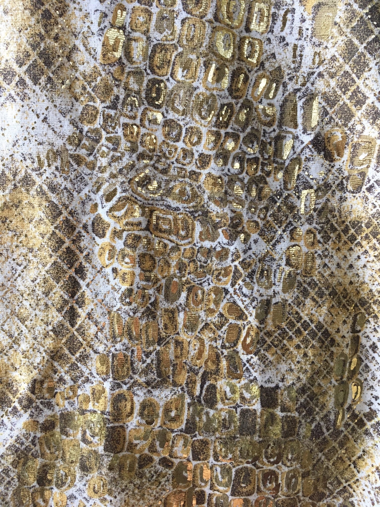 クリムトの絵画を思わす、長方形のゴールドが並んだ柄。