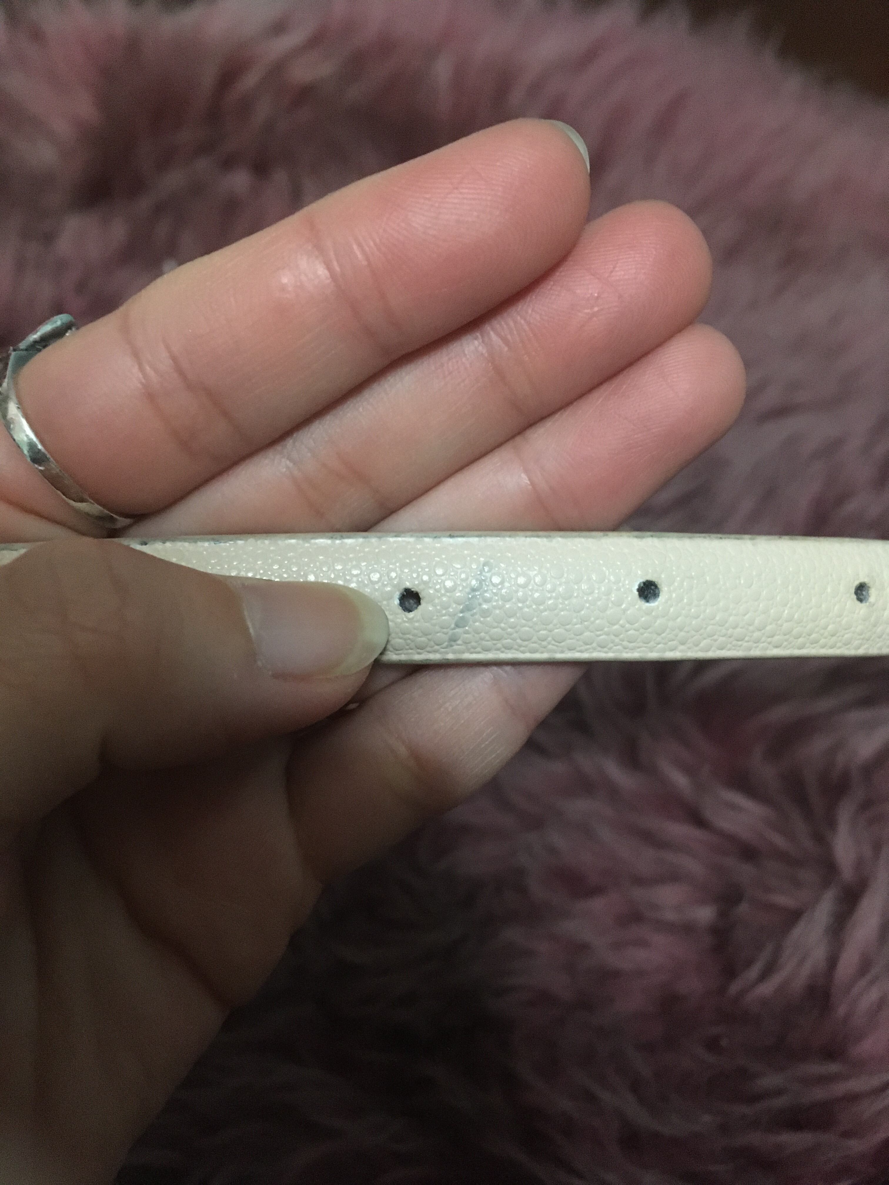 ベージュの優しいカラーとゴールドのバックルが上品な雰囲気で主張しすぎることなくコーディネートのポイントに使いやすいベルトです。