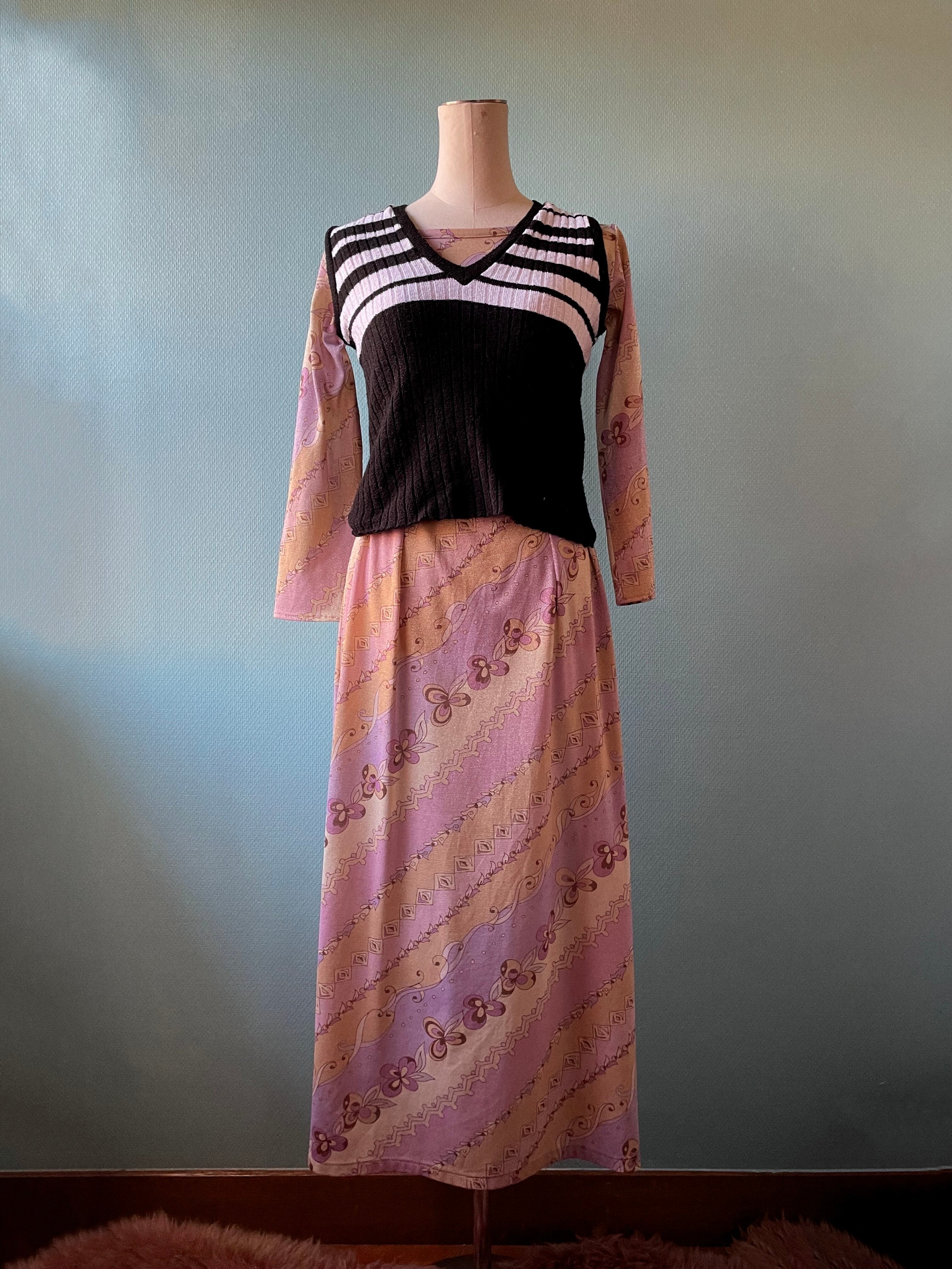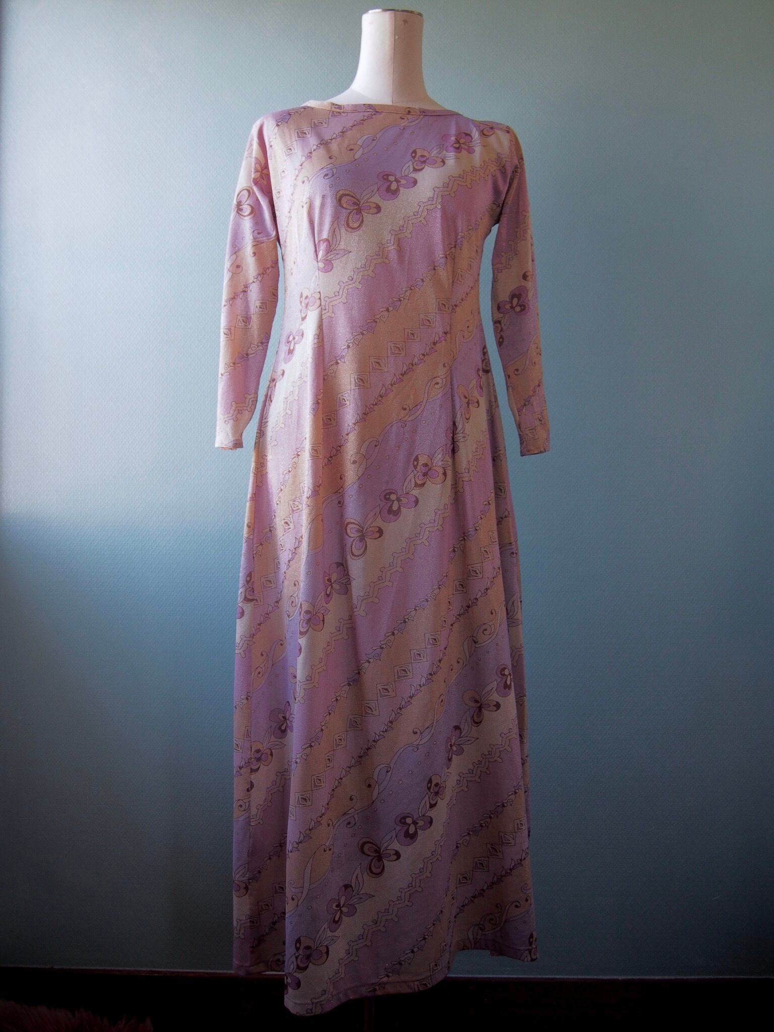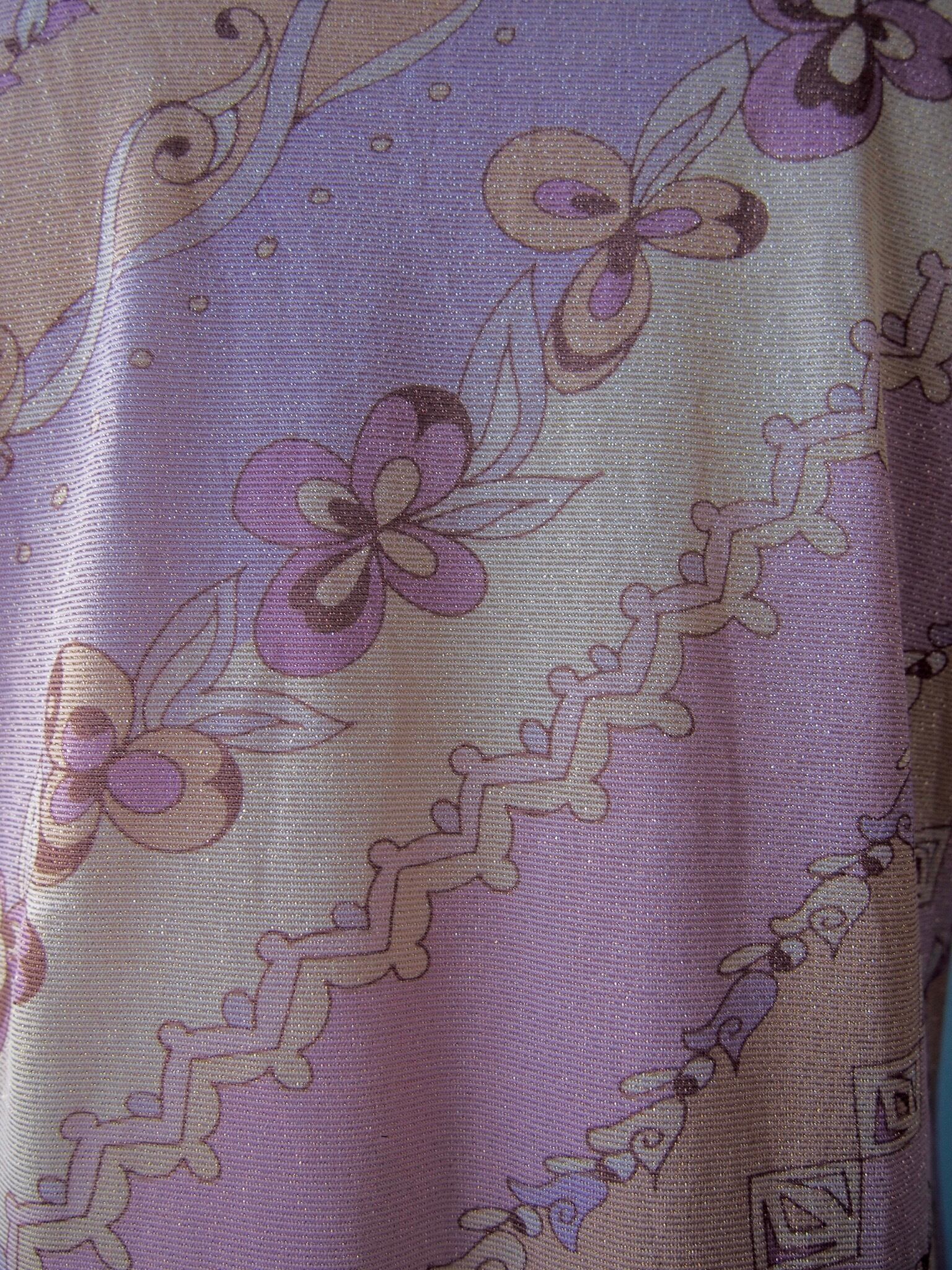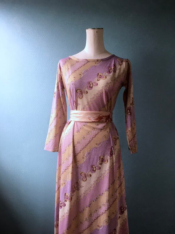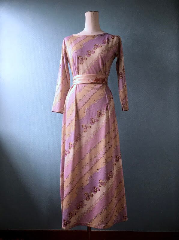 70sっぽい柄、レトロに着るのも良いですし、違うテンションのアイテムと合わせてミッスク感を出して着るのも良いです。シンプルな形ですがシルエットも綺麗です。
