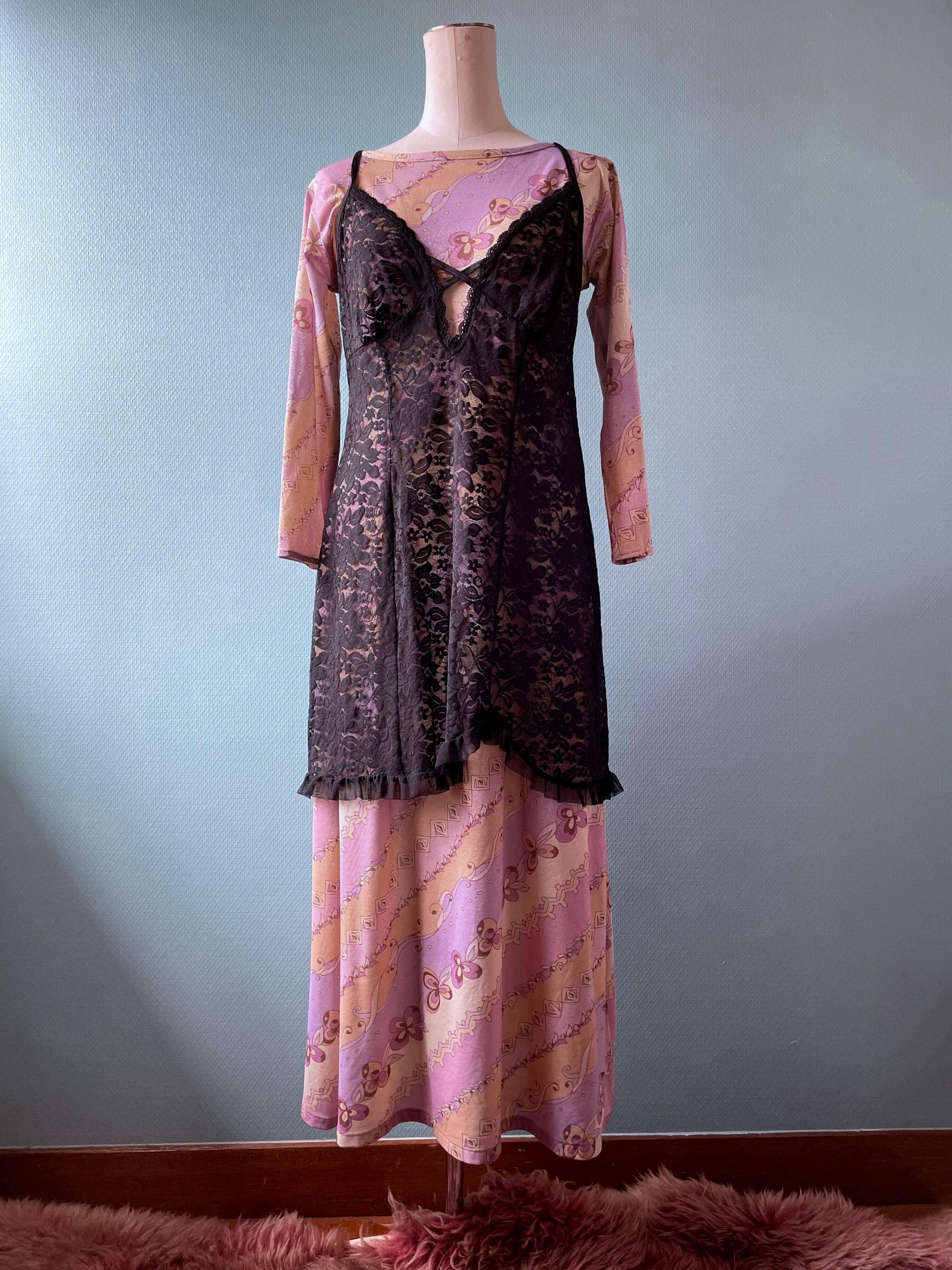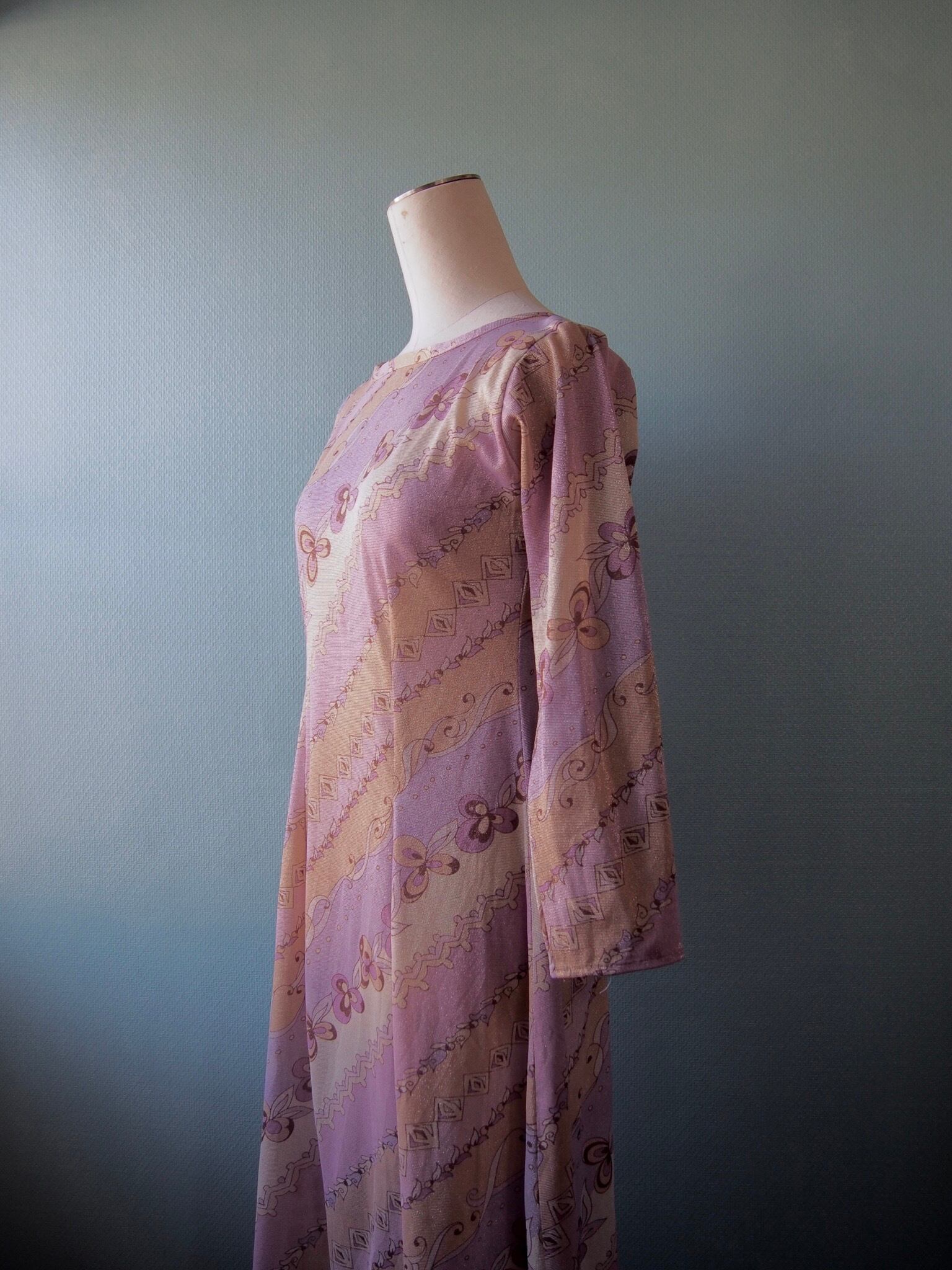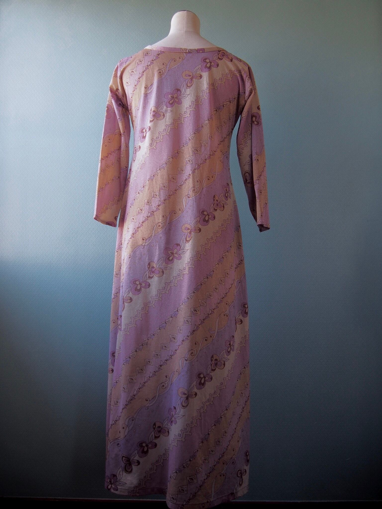 70sっぽい柄、レトロに着るのも良いですし、違うテンションのアイテムと合わせてミッスク感を出して着るのも良いです。シンプルな形ですがシルエットも綺麗です。