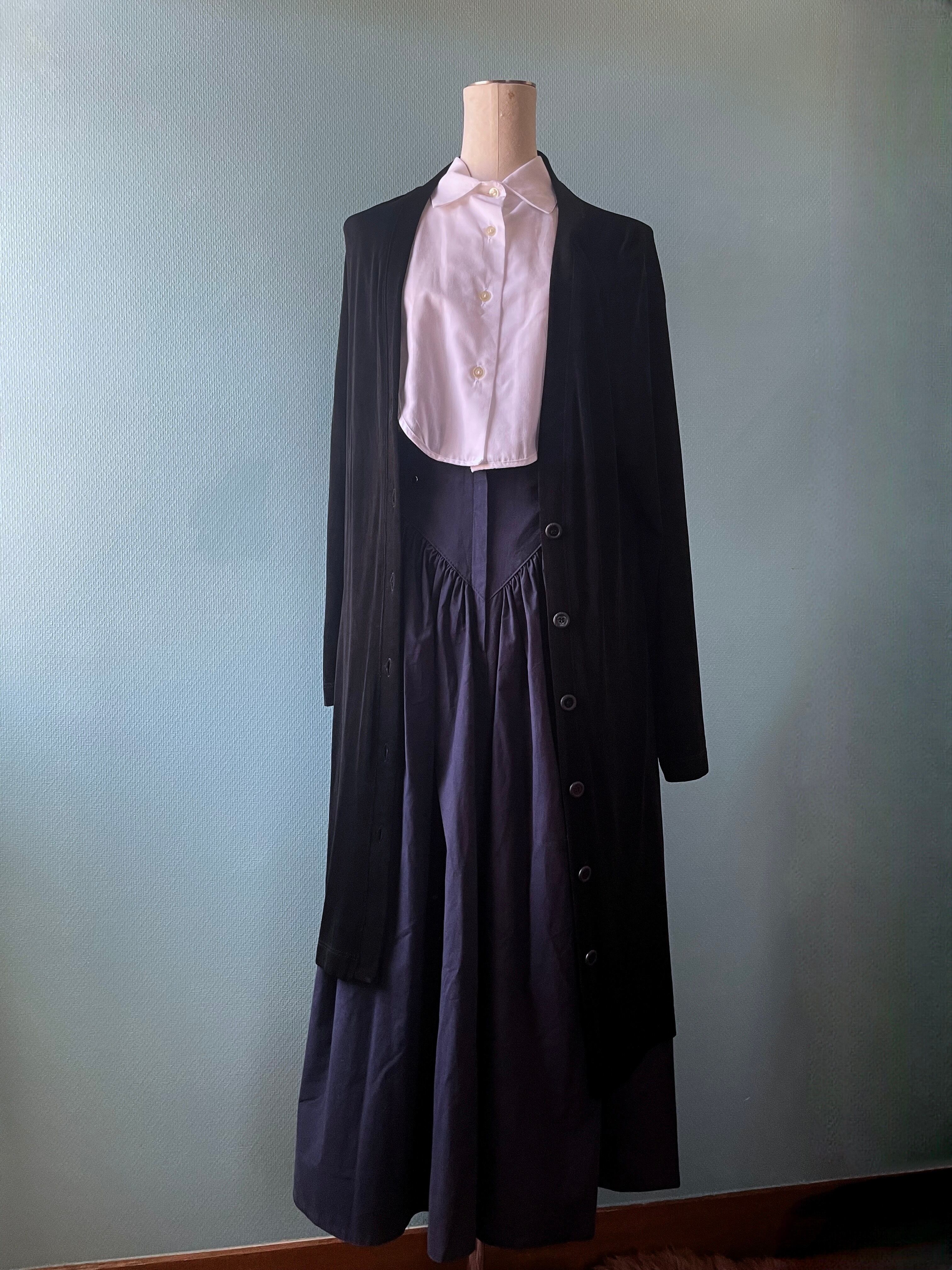 ワンピースにプラスするとクラシカルな雰囲気になります。中に入れ込んで、シャツを重ね着してるように使っても可愛いです。(たぶんそれが正解の着方かもです)