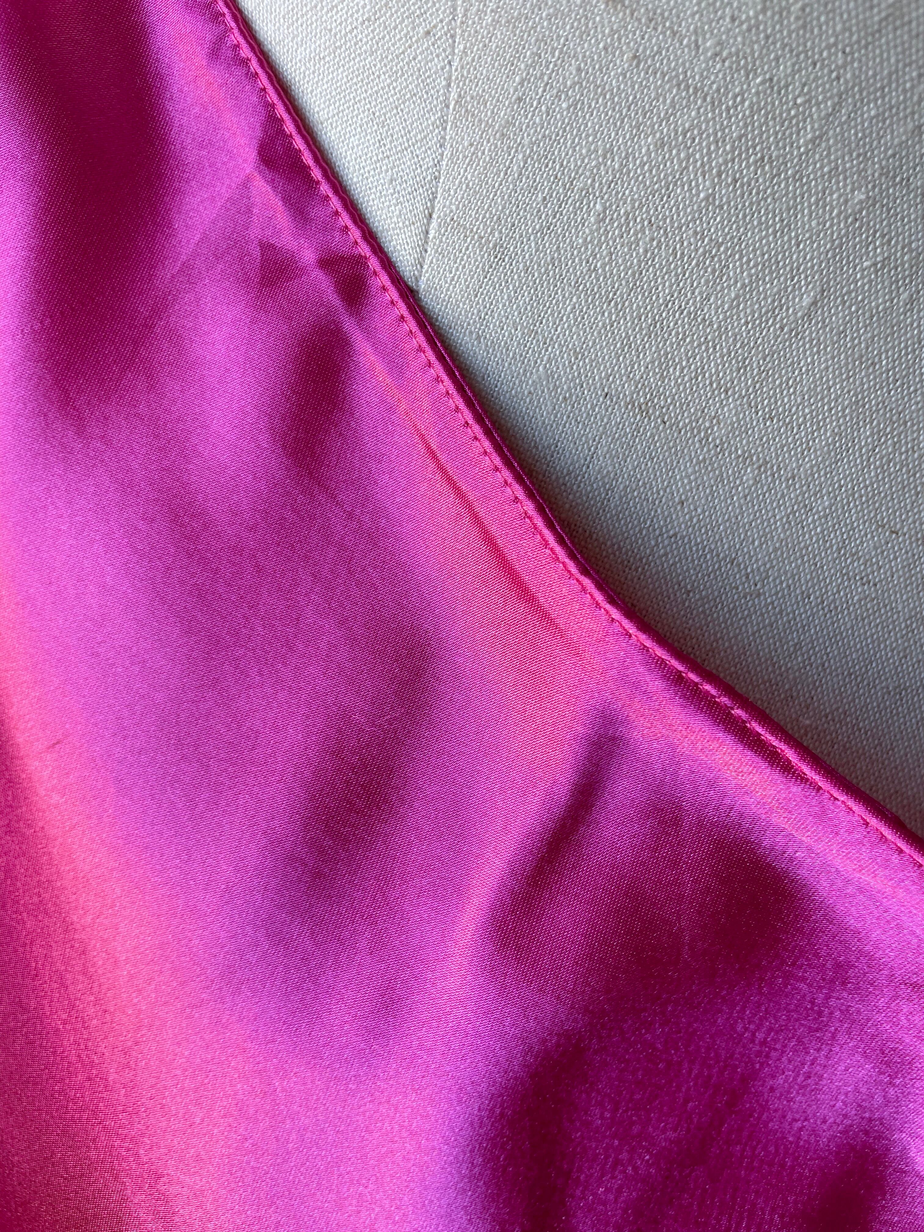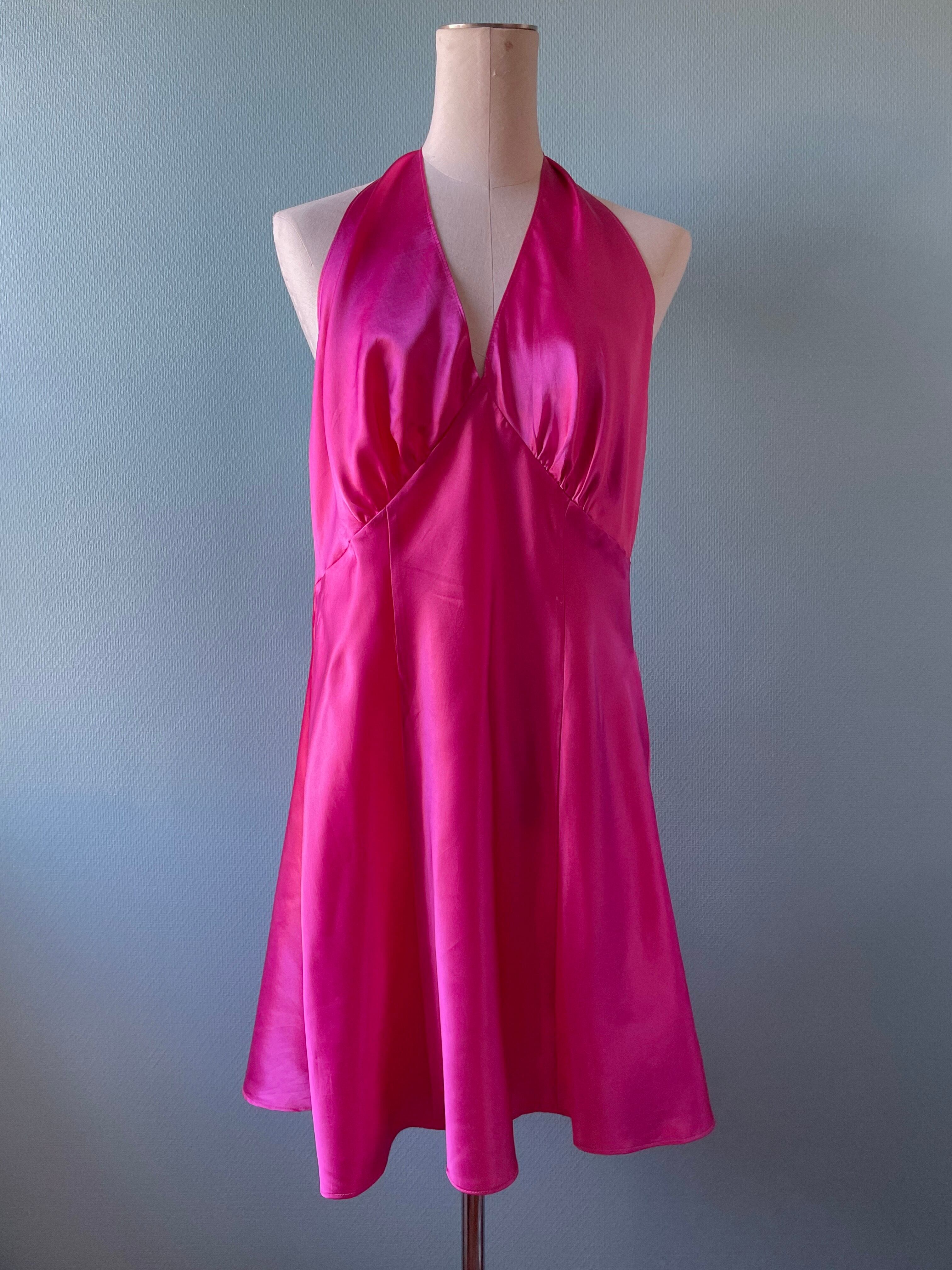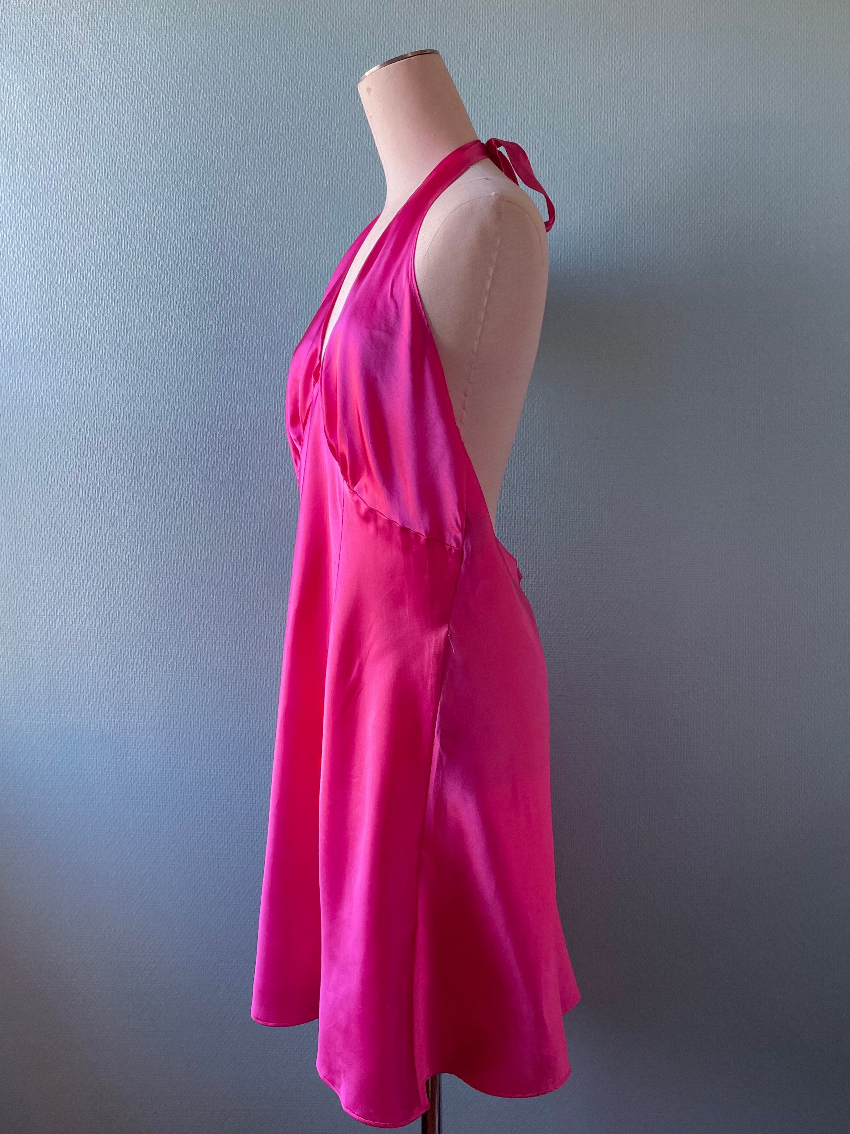立体的な胸元のシルエットが綺麗です。大きくひらいた背中も◎