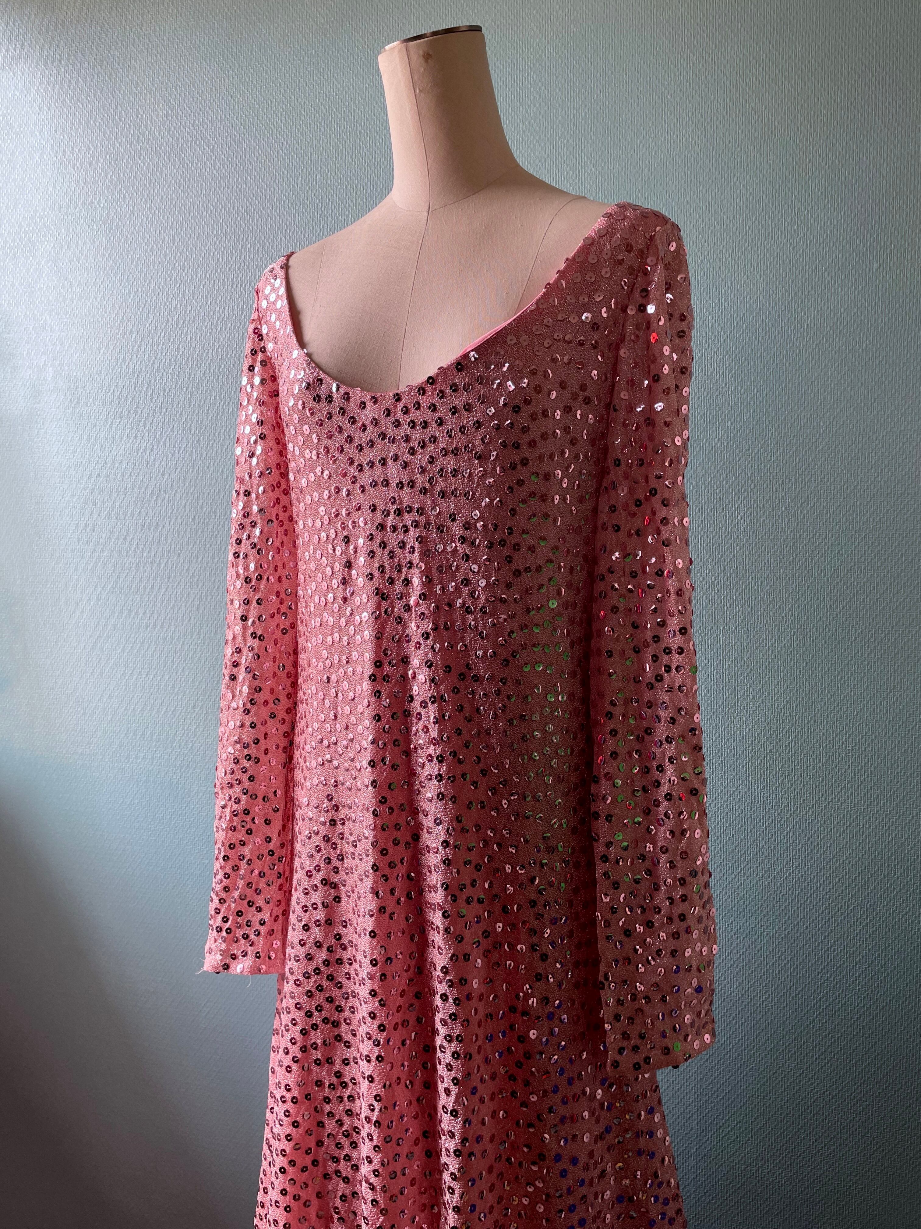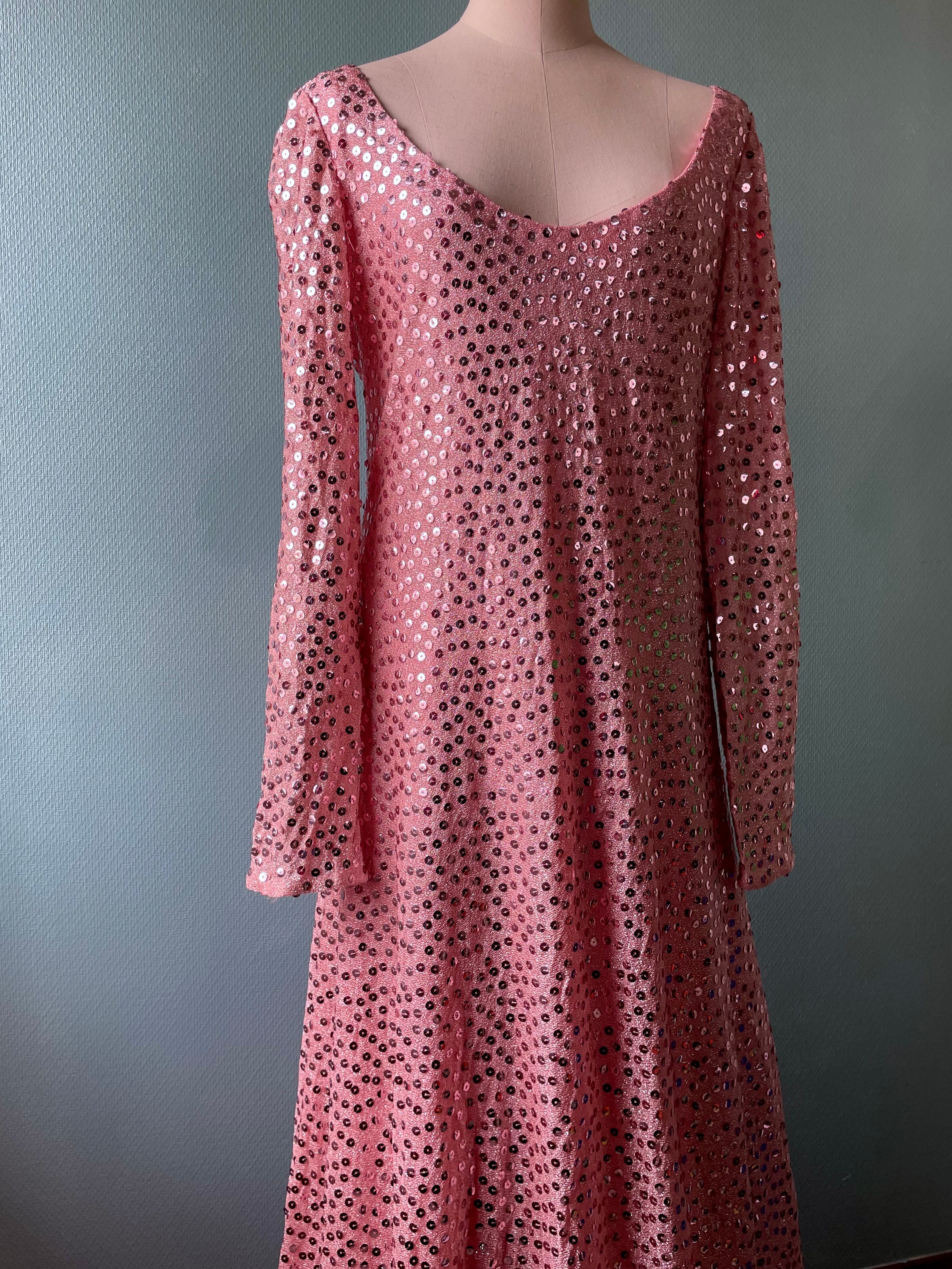 pink sequoal long dress