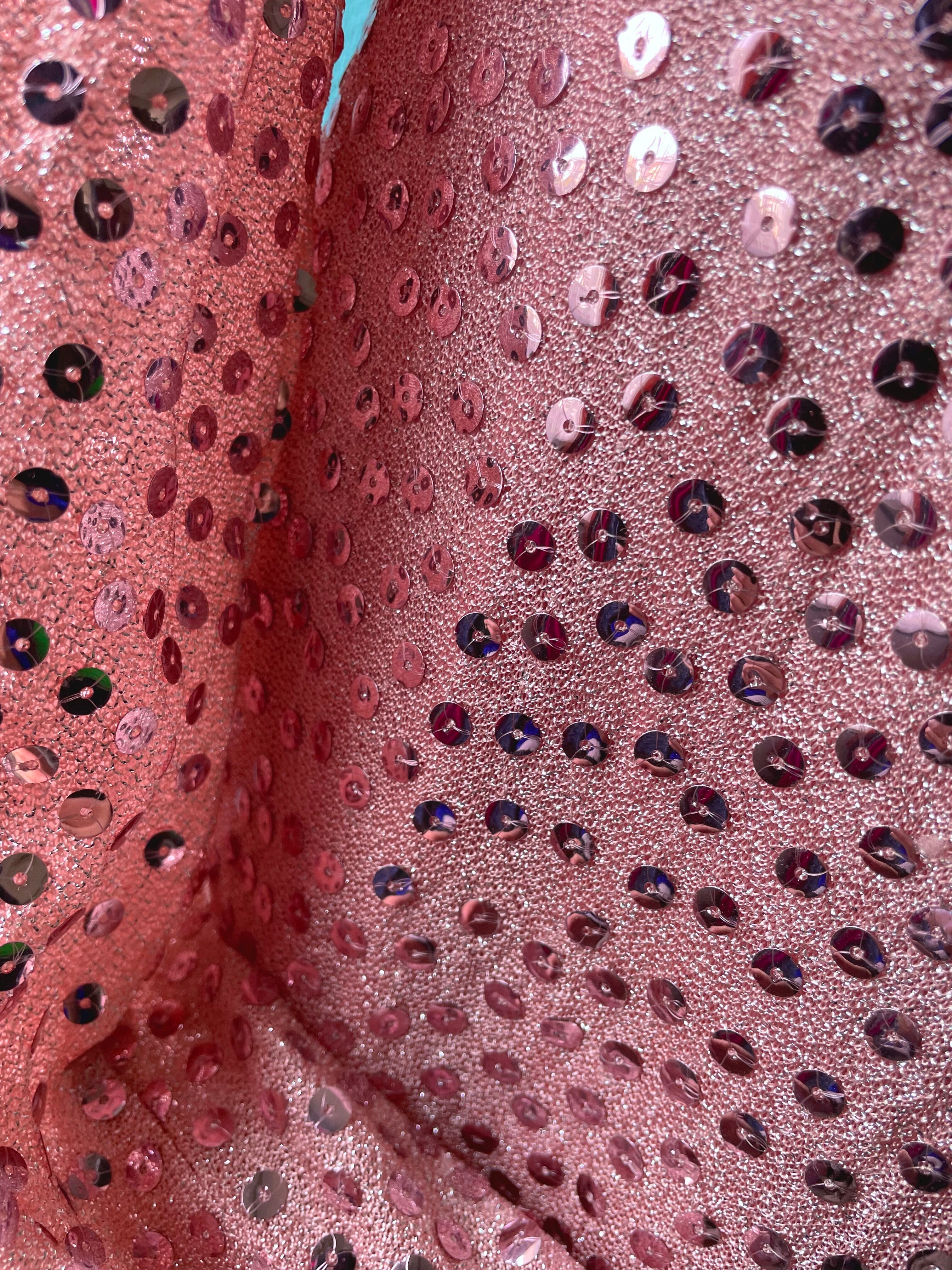 ピンクのスパンコールドレス。