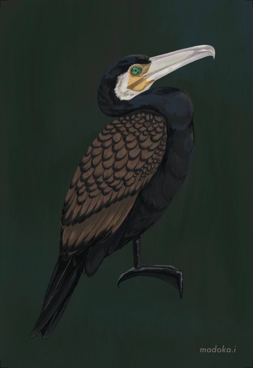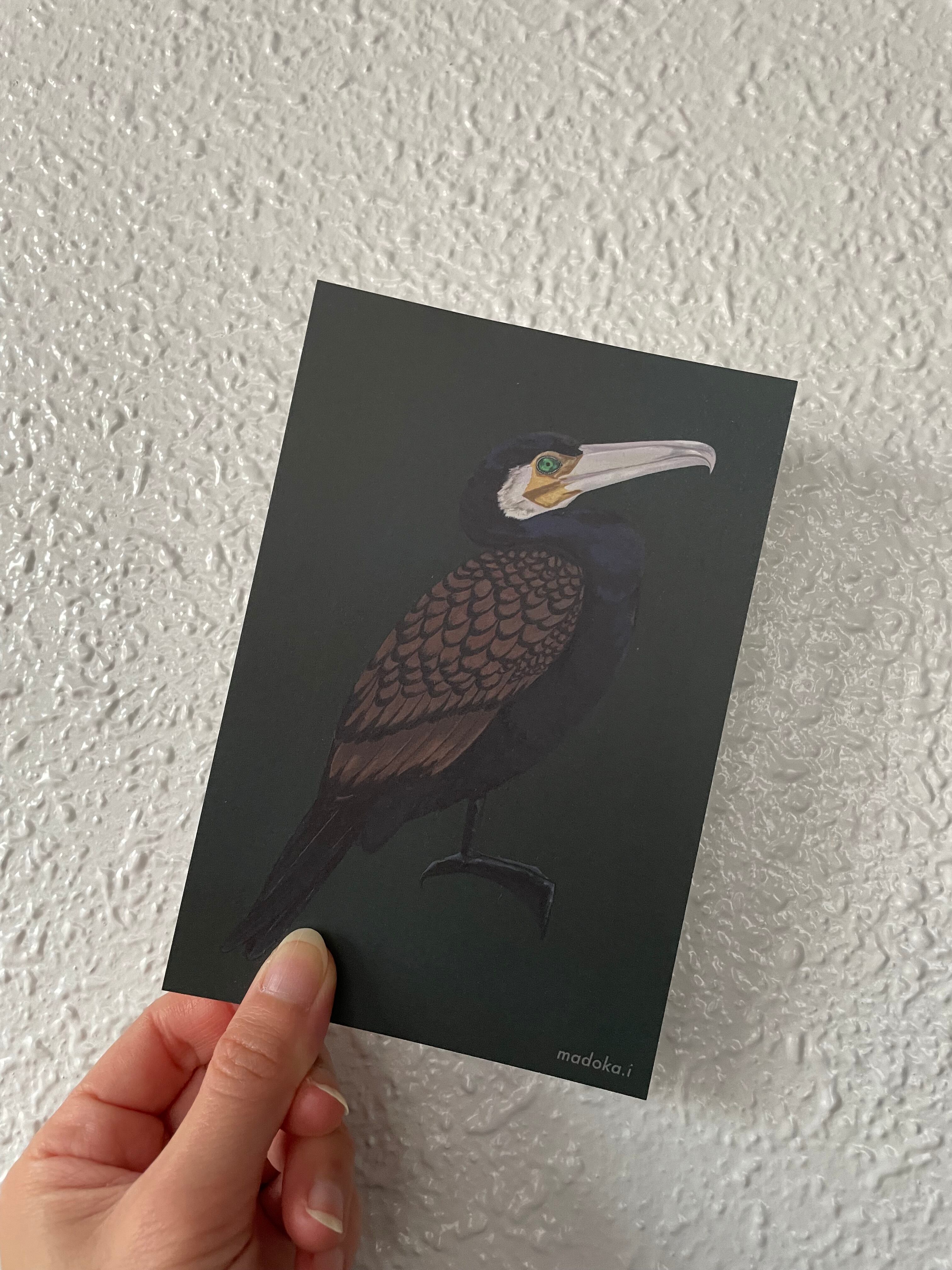 FOOLの店主のイラストをポストカードにしました。博物画の様なクールな雰囲気の鵜です。
